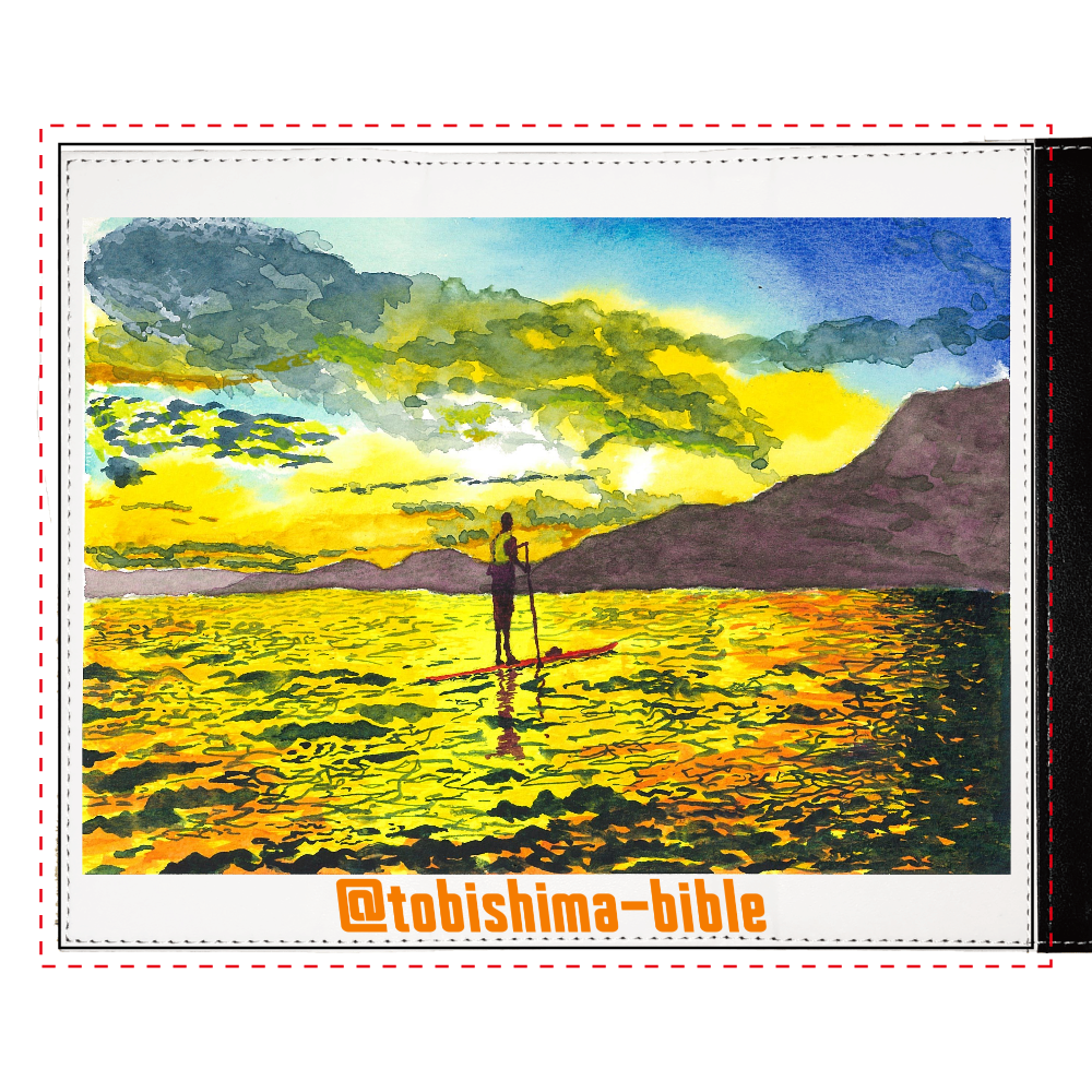 とびしま海道上蒲刈島の恋ヶ浜の夕日とSUPです。 令和3年度広島県Web公募美術展入選作品をプリントしました。